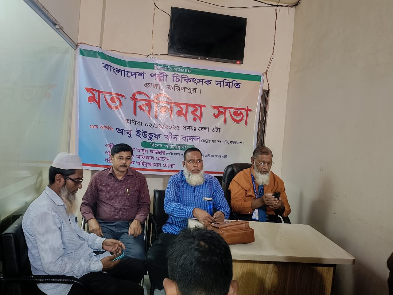ফরিদপুরের ভাঙ্গা উপজেলায় বাংলাদেশ গ্রাম ডাক্তার ও পল্লী চিকিৎসক সমিতির উদ্যোগে এক মতবিনিময় সভা অনুষ্ঠিত হয়েছে।