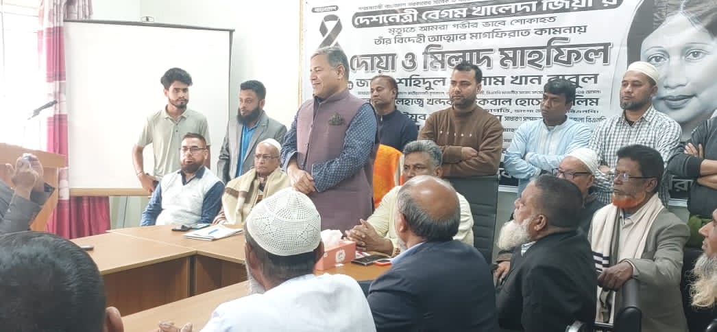 ফরিদপুরের ভাঙ্গা উপজেলা পল্লী চিকিৎসক সমিতির উদ্যোগে সাবেক প্রধানমন্ত্রী ও বিএনপি চেয়ারপারসন দেশনেত্রী বেগম খালেদা জিয়ার রুহের মাগফিরাত কামনায় এক দোয়া মাহফিল অনুষ্ঠিত হয়েছে।