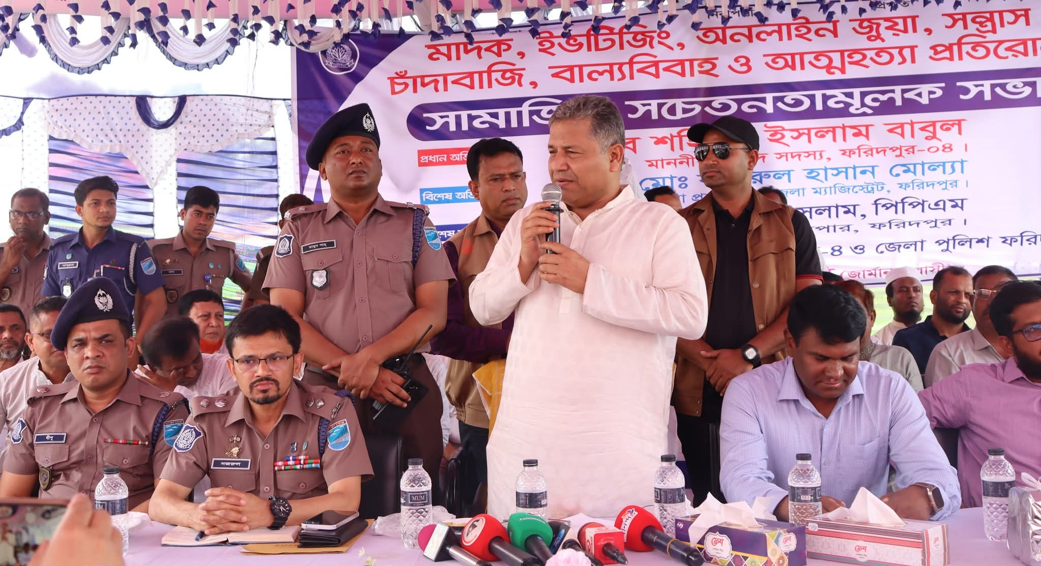 শনিবার (১৮ এপ্রিল) ফরিদপুর-এর সদরপুর স্টেডিয়াম মাঠে এ সভার আয়োজন করে ফরিদপুর জেলা পুলিশ ও স্থানীয় প্রশাসন। এতে প্রধান অতিথি হিসেবে উপস্থিত ছিলেন ফরিদপুর-৪ আসনের সংসদ সদস্য শহিদুল ইসলাম বাবুল এবং বিশেষ অতিথি হিসেবে উপস্থিত ছিলেন পুলিশ সুপার মোঃ নজরুল ইসলাম, পিপিএম।